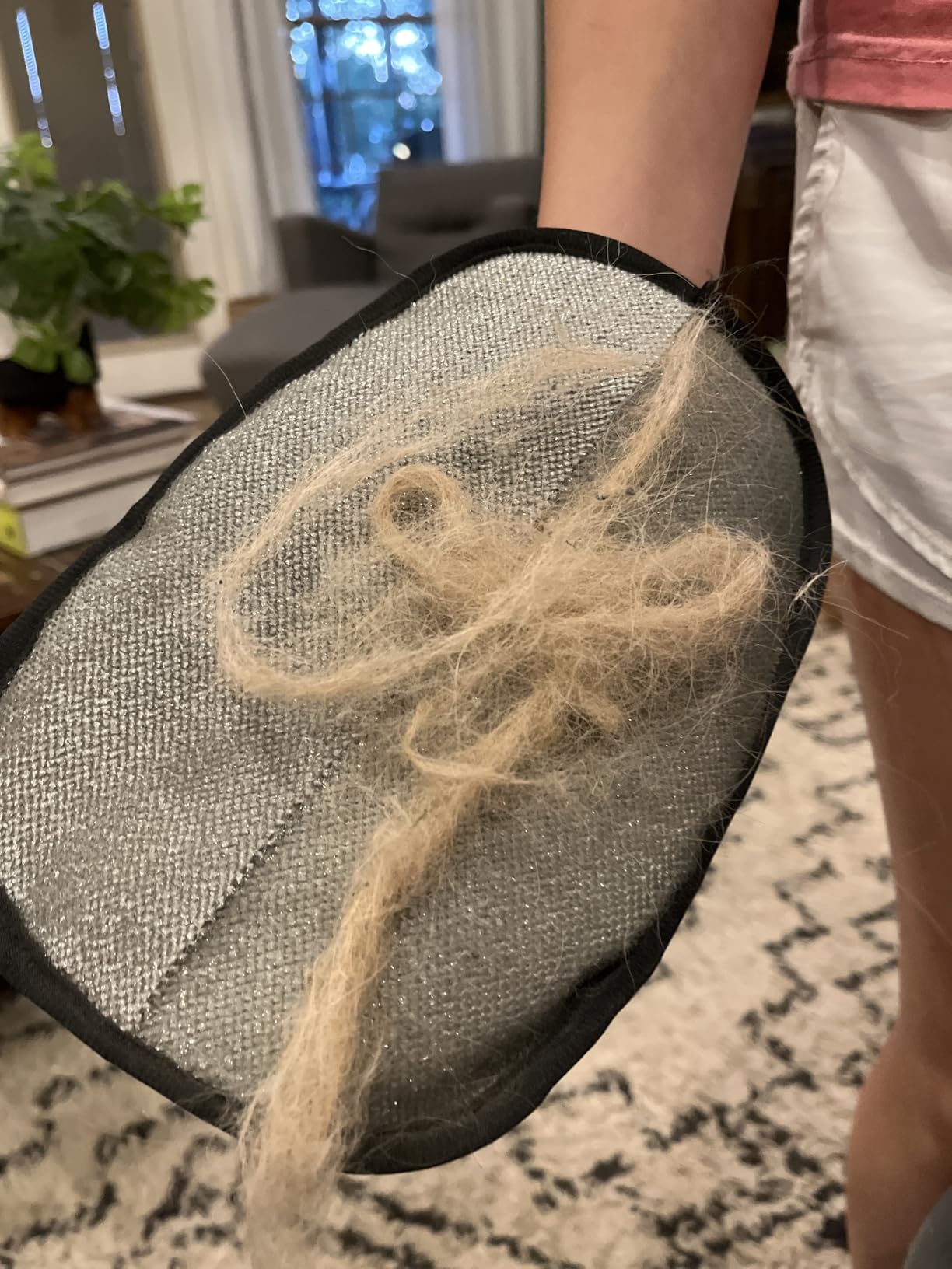 Many pet owners report finding hair that's been stuck in their couch since they first got their pet, finally coming loose with just a few swipes of this glove.