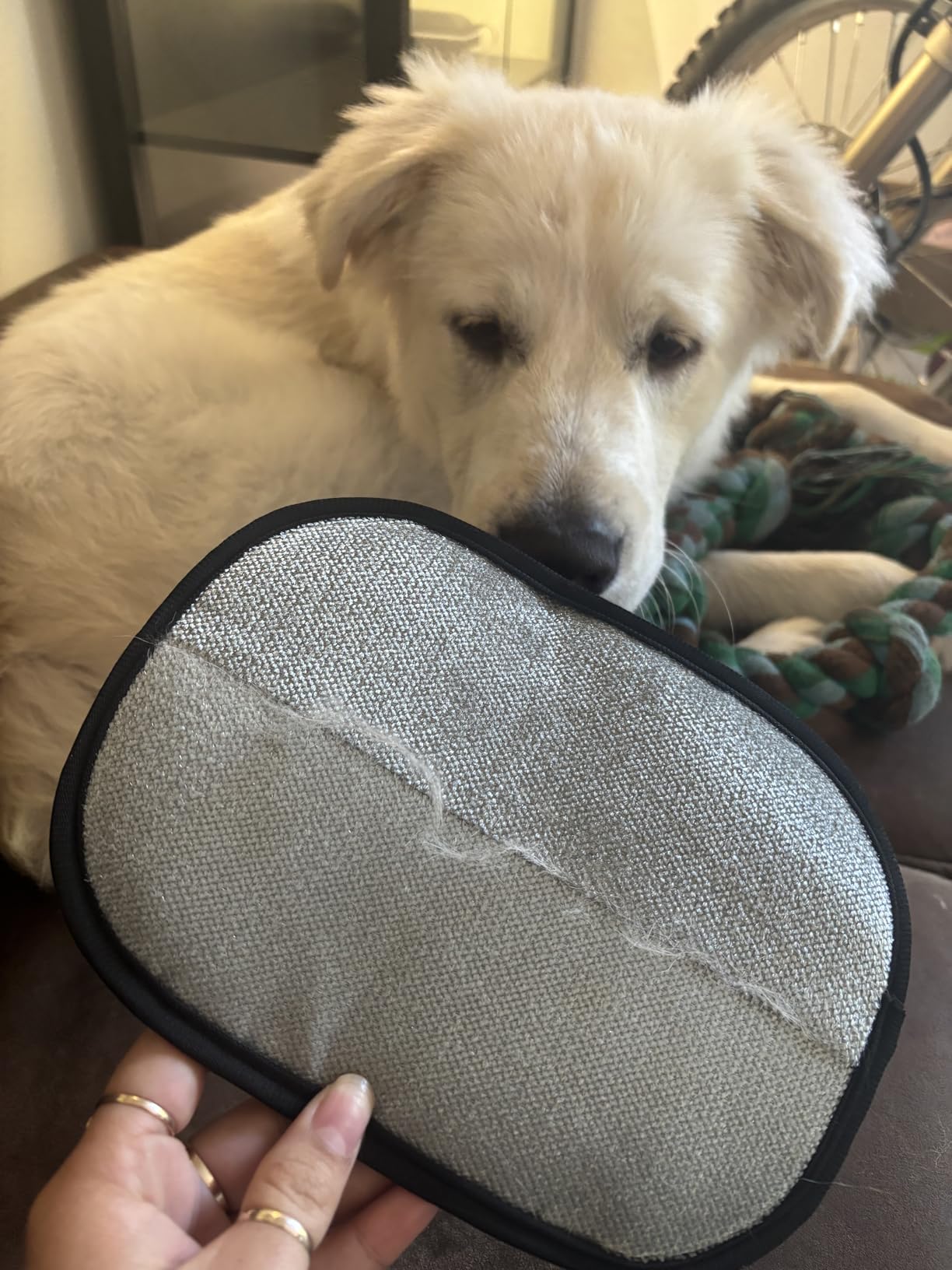 Our pet hair glove transforms what used to be a 3-hour daily battle into a 5-minute quick clean.